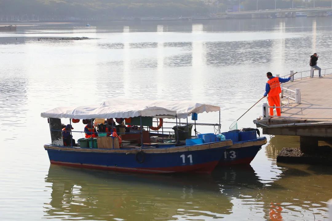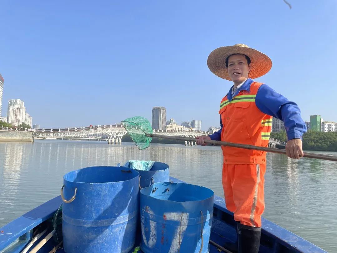 曾靈是三亞明佳園林環(huán)衛(wèi)集團(tuán)天涯區(qū)環(huán)衛(wèi)二隊(duì)的一名員工,和我們平常在街邊看到清理地面垃圾的環(huán)衛(wèi)工人有所不同,他的工作是在船上完成的,每天需要站在作業(yè)船上,手持一把長(zhǎng)柄濾網(wǎng),將漂浮在三亞河上的落葉、紙屑等垃圾打撈起來,放入專門的垃圾桶里再運(yùn)輸走。記者來到曾靈的工作地點(diǎn):三亞河,近距離了解他春節(jié)期間的工作是什么樣的……