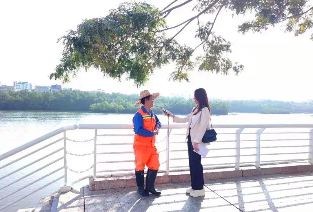 每天工作都是從早上7點(diǎn)鐘到下午的6點(diǎn)半,我們是分段來的。主要是坐船去收集河上的一些垃圾,一天巡邏清掃一次,清掃完了回來再巡邏保潔。水面和紅樹林里的垃圾都要清理。下雨天我們也要出來(工作),臺(tái)風(fēng)天就要做好防風(fēng)的工作,如果是下雨,我們一樣要出來打撈垃圾。